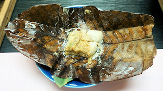 朴葉を開いてみたところ。