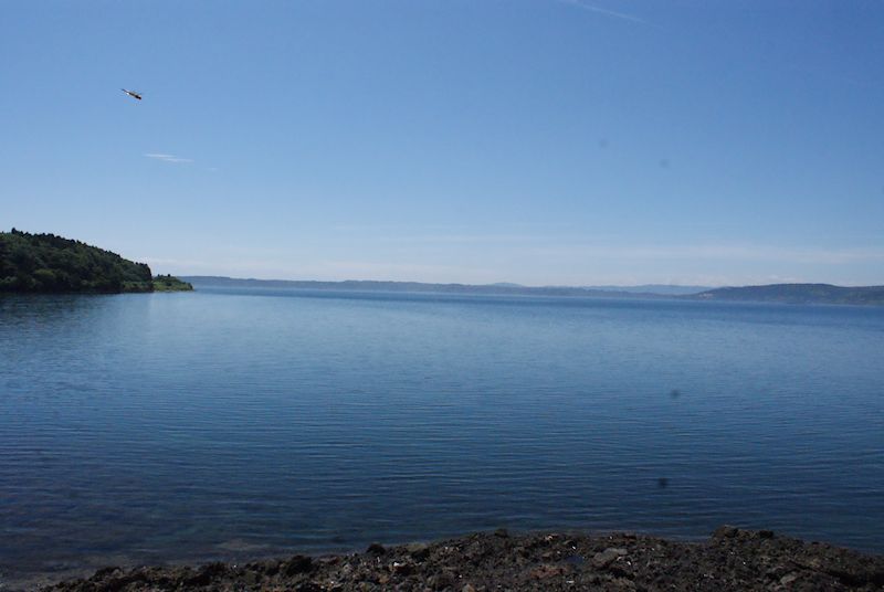 空に見えるのは赤とんぼ。海に見える黒い影はカメラのレンズの汚れ。