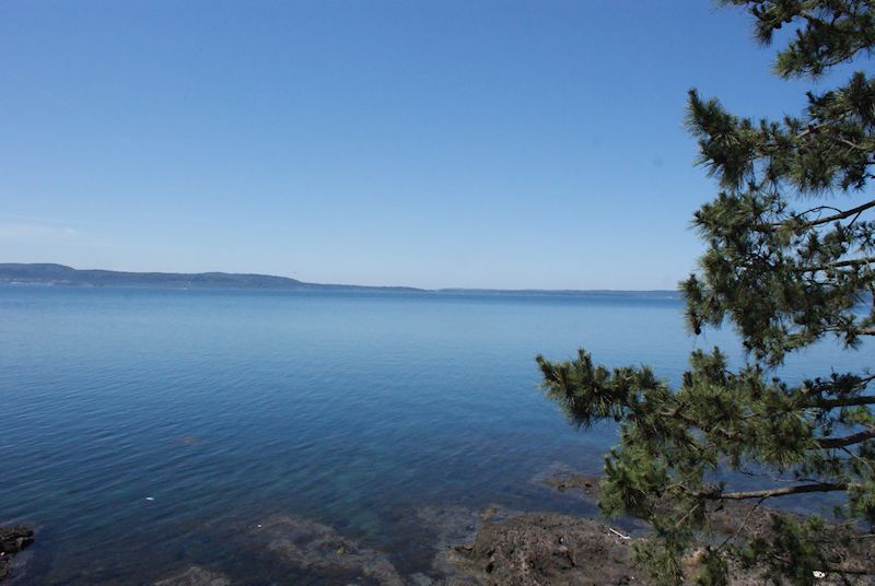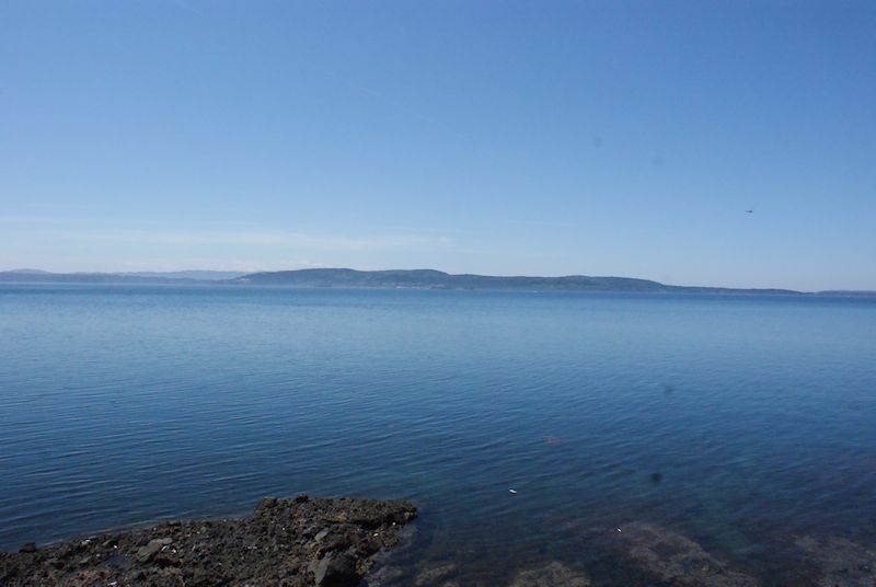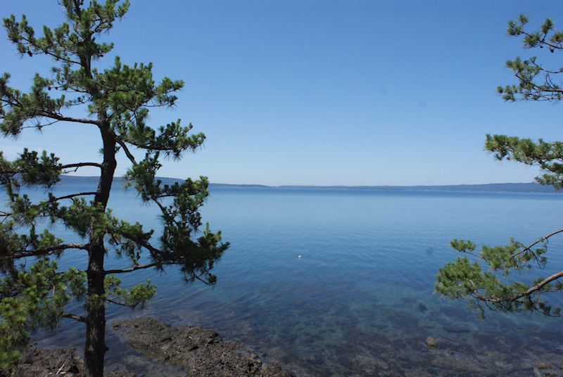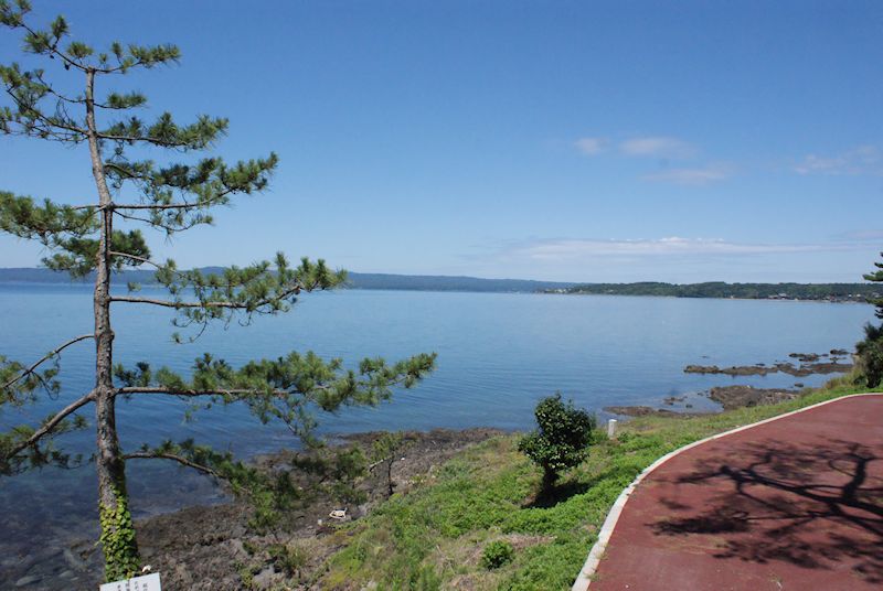 お天気の状況がよければ,能登島の向こうに富山県の立山連峰が見えるそうです。この日はお天気がよすぎてかすんでよく見えません。