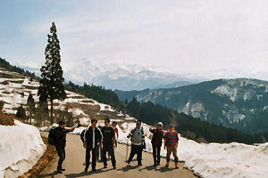 望岳苑の駐車場で,本日の大宮登山隊の一行です。