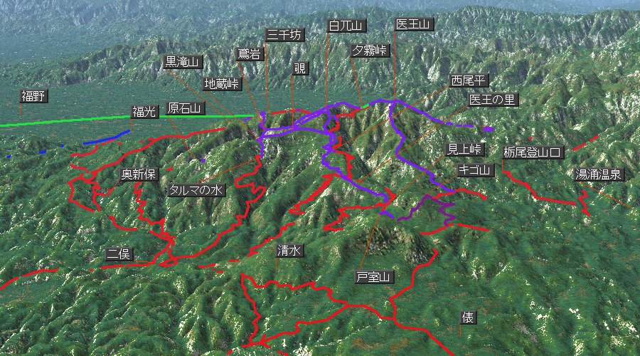 この鳥瞰図の作成にあたっては,上記の国土地理院発行のデータおよびDAN杉本氏作成の「カシミール3D」を使用しています。