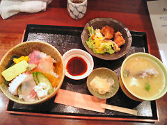 ひとりが,「おっ,今日のランチは海鮮丼や。これいいんじゃないか。」と言うので,たいしてこだわりのない面々は,ここ「あまつぼ」に入ったのだった。
