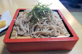 そして「ざる蕎麦」がやって来た。細めの蕎麦で,いわば伝統的な切り方というべきか。
