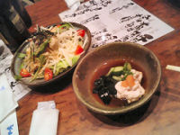 何とかのチョレギサラダ。「チョレギ」って韓国語のようだが,いったい何をチョレギというのか知りもせず注文したのだった。いったいこの中の何が「チョレギ」なのかねえ,と言いつつ,結局最後まで食べてしまう。よくわからぬまま終わったのだった。