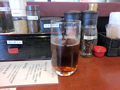 いや表の看板には「期間限定」などといって冷たいラーメンが新しく3種ほど並んでおり,「限定もの」に弱い満腹探検隊隊長はちょっとだけ惹かれたが,やはり基本のお品書きの中から選ぶことにした。
