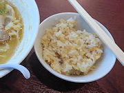 さて,待つことしばし,ごはんと「つけ麺」がやって来たが,「つけ麺」を持って来た店主が「『中』でしたが『並』の量で作ってしまいました。今すぐ追加を持って来ますのでお待ちください。」と言う。こちらとしては結果的に「中」であればよいので「いいですよ。」と答えて,食べ始めるのだった。