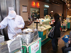 店の前にはいろいろ美味しそうなものが並んでいる。そして,何よりも,ちょっと寒い日だったので,この湯気を上げているところが食欲を一段とそそる。