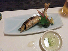 久しぶりに食べる鮎だったが,実に美味しい。いつものように頭からすべてかぶりつく。季節だねえ。これは富山は庄川の鮎らしい。