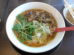 そのあとやおら麺をいただくが,この麺がなかなかいい味である。いや,この中太麺,スープが絡み,適度な茹で具合である。