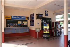 この駅に止まる列車の時刻を写してみると,クアラルンプール発シンガポール行きは23:39,10:03,16:14と3本,逆のシンガポール発クアラルンプール行きは03:30,12:15,20:06の3本,タンパット(Tunpat)発クアラルンプール行きが04:53,19:29の2本,逆のシンガポール発タンパット行きが22:43,18:39の2本である。都合,上下線あわせて10本の列車がここに止まる。
