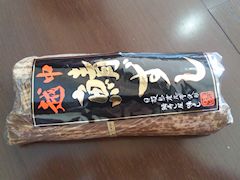 ついでながら連れ合いが表の出店で「串かまぼこ」とやらを買ってくる。かまぼこも富山名産である。3種類あって「地魚(ニギス)」「真昆布」「越中味噌」だが,これは「越中味噌」。