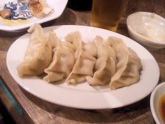 出てきた餃子をいただきながらビールを飲む。ほかにもいろいろとお品書きがあるが,3次会なのでとりあえず餃子のみ。いや,営業時間を過ぎてこれ以上何でも注文したら迷惑である。しかし,焼きたて餃子がビールに合う。ここは本当にさくっと呑むにはいい店のようである。