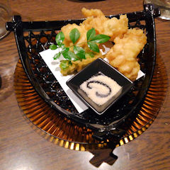 最初はつき出し風にいろいろなものが小鉢で出てきた。はて何だったやら,よく覚えていない。