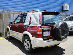 日本のスズキの車ですが,事故にあったやら,ぶつけたやら,壊れたところをビニールで覆ってテープでとめてあります。なかなかやるねえ。