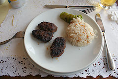 本日の主菜はキョフテという肉だんごである。肉だんごというかハンバーグという感じだ。これは焼いてある。