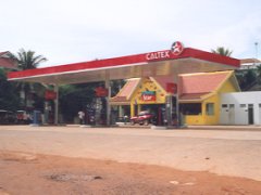 (左・この町にただ一つあるコンビニです。ガソリンスタンドに併設されています。次の日に撮影しました。)